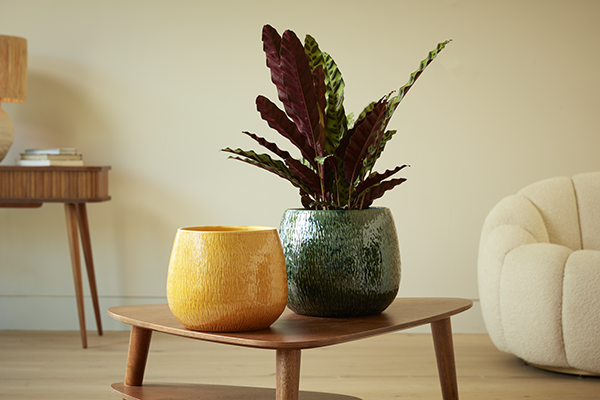 If customers are looking to add greenery to a small space, the Isla hanging pots or the Fern planters are ideal. For a touch of elegance, the Marta urn or Telma planter offer classic and modern options. For a rustic and natural look, the Finn and Bay planters are perfect. The Deco planter features a geometric pattern for a modern touch, while the Monoplanter is a simple and elegant choice. The Tide planter's playful wave design is perfect for adding a fun and functional touch to your space, whilst the Lemon planter's citrus design adds a cheerful touch to any room.